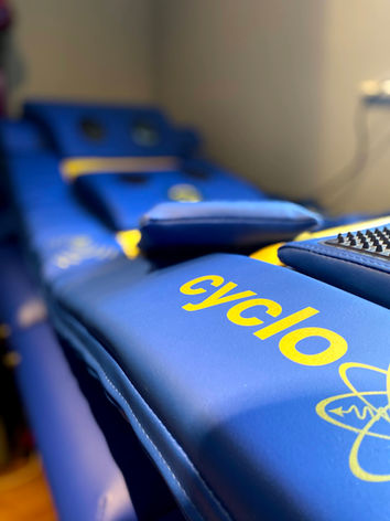 The Cyclo-ssage Massage Therapy System contains nine massage units. Each produce a three-dimensional massage action known as Cycloidal Oscillation. Non-percussive and multi directional in effect, this soothing action penetrates deep into the muscle tissue with no adverse side effects.